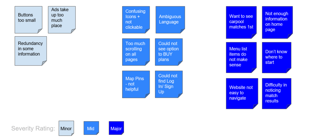 We compiled the results of our evaluation and initial user testing and listed out the final issues of different severity ratings from minor to major.
