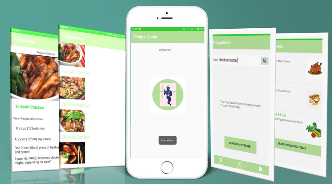 The Mobile application is intended to provide users with meal options based on the items in their virtual/real refrigerators at home with very little effort and convenience. Fridge Genie will allow users to sign in, create a profile, and log items they have at home by checking them off under food tile categories or utilizing the search function if an item in your home is not listed. Fridge Genie will help them use food they already have creating less waste, saving them money, and making health and ease convenient.