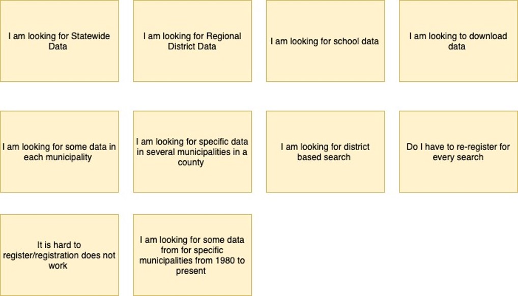 - Users are looking for statewide data which can be accessed in the current website, but it is not clear to the users